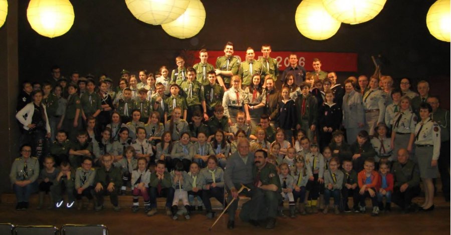 Nasze spotkanie rozpoczęło się od powitania i krótkiej gawędy naszego gościa - Roberta Baden-Powella. Jednak nieoczekiwany zwrot akcji, porwanie naszego solenizanta, przyniósł ciekawą grę terenową, podczas której można było m.in. sprawdzić swoją znajomość szyfrów, to czy mamy opanowaną mapę oraz popisać się wiedzą na temat harcerstwa. W tym czasie zuchy ratowały Czerwonego Kapturka, który wpadł w sidła złego wilka. Także wzięły udział w grze, a ich zadaniem było odgadywanie różnych rymowanych zagadek.