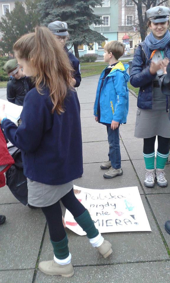 11 listopada na wodzisławskim rynku zebrało się 6 drużyn z naszego hufca, żeby wziąć udział w grze, która odbyła się na terenie rynku. 48 osób zostało podzielonych na 6 patroli mających do wykonania po 5 zadań takich jak: krzyżówka z hasłami rozrzuconymi po całym rynku, pisanie odezwy, dopasowanie portretów do historycznych nazwisk, rysowanie kredą malowidła dot. 11 listopada czy rzucanie balonem wypełnionym wodą. Wszystkie patrole zawzięcie walczyły o zwycięstwo więc klasyfikacja końcowa przedstawia się następująco: